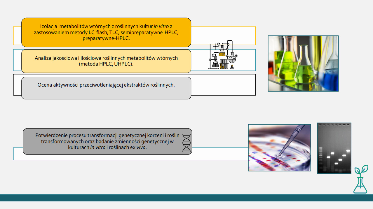 Studenckie Koło Naukowe przy Zakładzie Biologii i Botaniki Farmaceutycznej zaprasza Studentów chcących poszerzyć swoją wiedzę z zakresu roślinnych kultur in vitro. Celem Koła jest rozwijanie zainteresowań związanych z prowadzeniem badań naukowych z biotechnologii roślin leczniczych, fitochemii i biologii molekularnej.